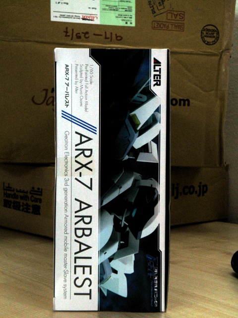 The newest addition is the long awaited ARX-7 Arbalest arm slave model from Alter. The model is scaled to 1/60 from its actual size in the anime series Full Metal Panic.