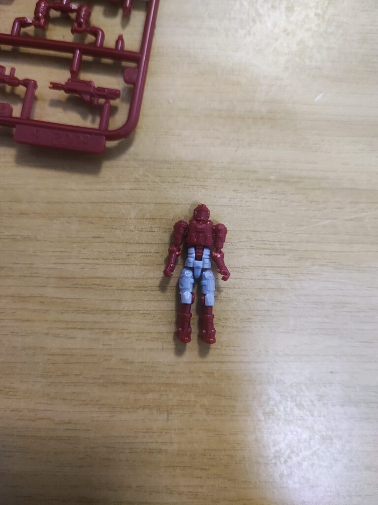 Recommended way to assemble the figure is, assemble the limbs separately.